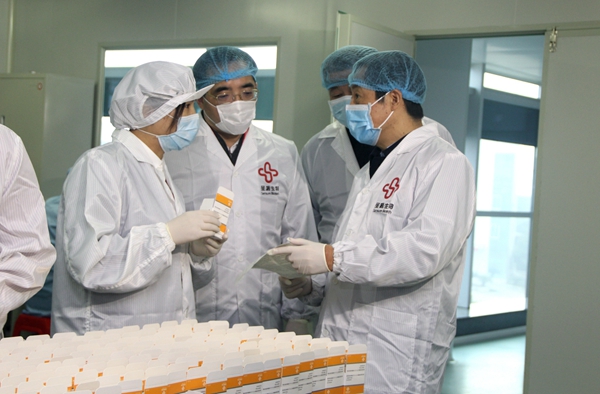 時任湖南省省長、現(xiàn)任湖南省委書記許達(dá)哲在抗疫早期調(diào)研圣湘生物抗疫物資生產(chǎn)情況