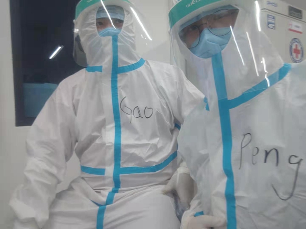 在火神山醫(yī)院剛建好時(shí),檢驗(yàn)設(shè)備有待完善,彭俊瀟與團(tuán)隊(duì)得到消息后迅速趕往醫(yī)院檢驗(yàn)區(qū)裝機(jī)實(shí)驗(yàn)。沒有空調(diào)、沒時(shí)間喝水,團(tuán)隊(duì)人員穿著防護(hù)服在檢驗(yàn)區(qū)一待就是10多個(gè)小時(shí)。