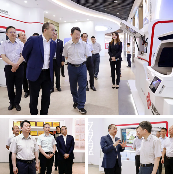 6月11日下午,國務院發展研究中心副主任隆國強一行實地考察調研圣湘生物。湖南省政府發展研究中心黨組書記、主任談文勝,湖南省政府發展研究中心副主任、黨組成員、湖南省政協提案委員會副主任唐宇文陪同調研。