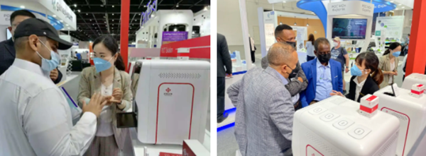 在全球疫情防控形勢仍較嚴峻的情況下,參展之前,圣湘生物派遣了多支專業國際技術團隊深入阿聯酋各地醫院,拜訪終端客戶,了解產品實際應用情況,進行培訓帶教,為他們提供最快的一線服務,及時解疑答惑。