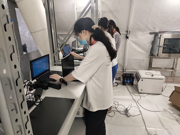 25日,在3組“獵鷹號”氣膜實驗室的儀器設(shè)備安裝完成后,技術(shù)服務(wù)團隊又馬不停蹄將新送達的儀器設(shè)備安裝到另外3組“獵鷹號”氣膜實驗室。與此同時,他們還需兼顧已啟用的3組實驗室的儀器設(shè)備運行、實驗人員操作培訓(xùn)等。