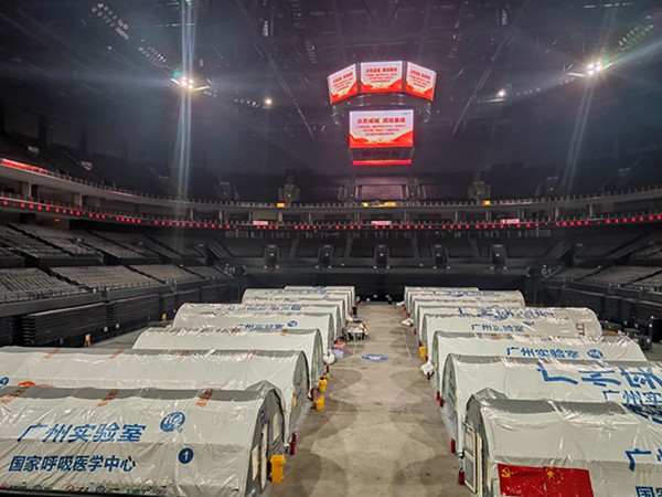 7月23日,按照南京市防疫指揮部部署要求,在南京青奧體育公園體育館內(nèi),搭建6組共18座氣膜實驗室。接到任務(wù)后,圣湘生物所有支援隊員緊急行動,技術(shù)服務(wù)、后勤運輸?shù)葓F隊緊密合作,圣湘方案全面助力南京“獵鷹號”氣膜實驗室搭建,構(gòu)建疫情防控篩查體系。
