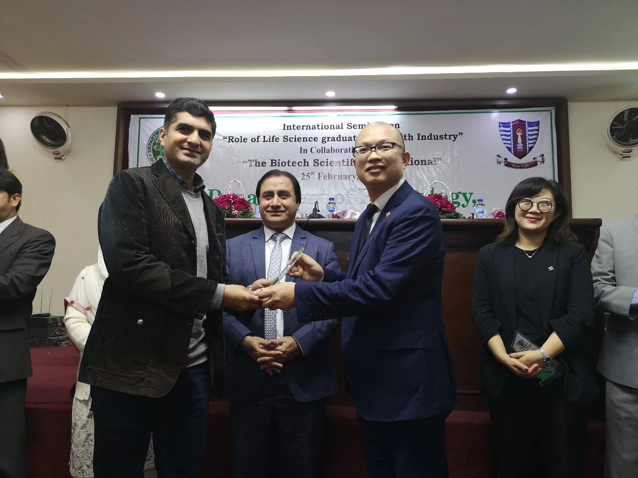 為更好地促進兩方的交流與合作,講座結束后,學校方舉行了授牌儀式,向圣湘生物授予了“友好交流合作機構”榮譽,并期望雙方未來可以有更加密切的聯系,將分子診斷技術普及到巴基斯坦的每一個地區,惠及到每一位民眾。