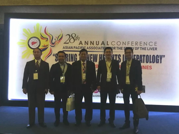 2月22日,第28屆亞太肝病研究學會年會(APASL)開幕式在菲律賓馬尼拉舉行。APASL會長Shiv Sarin教授,APASL前任主席Masao Omata教授,APASL現任主席Diana A. Payawal教授,APASL2019主席Rino Gani教授,APASL cum-Treasurer秘書長魏來教授,APASL2018主席Barjesh C. Sharma教授,美國肝病學會現任主席Michael Fried教授和全球各國的肝病專家齊聚一堂。