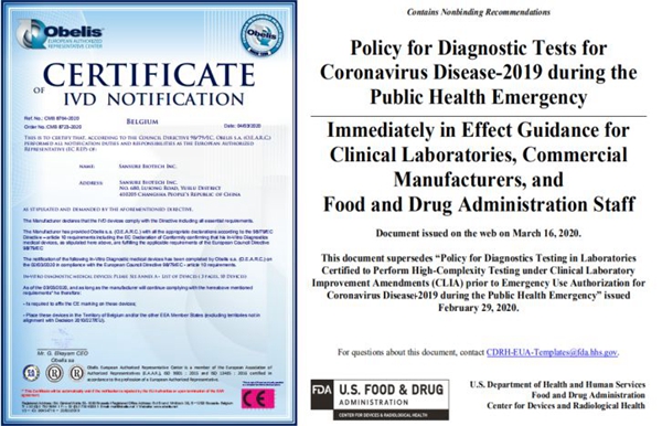 圣湘生物作為抗擊疫情的一份重要力量,3月3日新型冠狀病毒核酸檢測(cè)試劑已獲歐盟CE認(rèn)證。此外,公司已經(jīng)啟動(dòng)美國(guó)FDA EUA(緊急使用授權(quán))申請(qǐng),且Pre-EUA已受理,根據(jù)美國(guó)FDA 3月16日最新發(fā)布的新冠肺炎相關(guān)檢測(cè)政策指南,圣湘生物新型冠狀病毒核酸檢測(cè)試劑盒可在美國(guó)供臨床使用,服務(wù)當(dāng)?shù)匾咔榉揽亍?